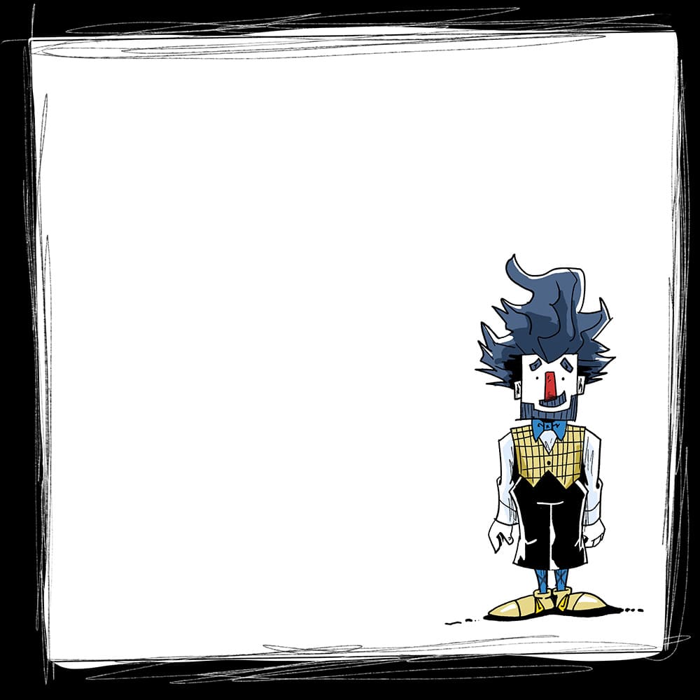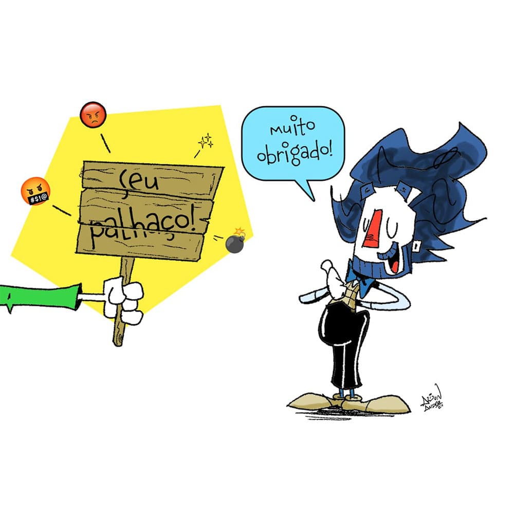 Olirrô sou eu. Pra quem só conhece meu trabalho como ilustrador, eu também sou palhaço. Faço circulação com meu espetáculo solo no qual sou um palhaço pintor. E a ideia de trazer o Olirrô pro papel veio pra ter um personagem de apoio pra produtos vendáveis depois dos espetáculos e também para redes sociais.