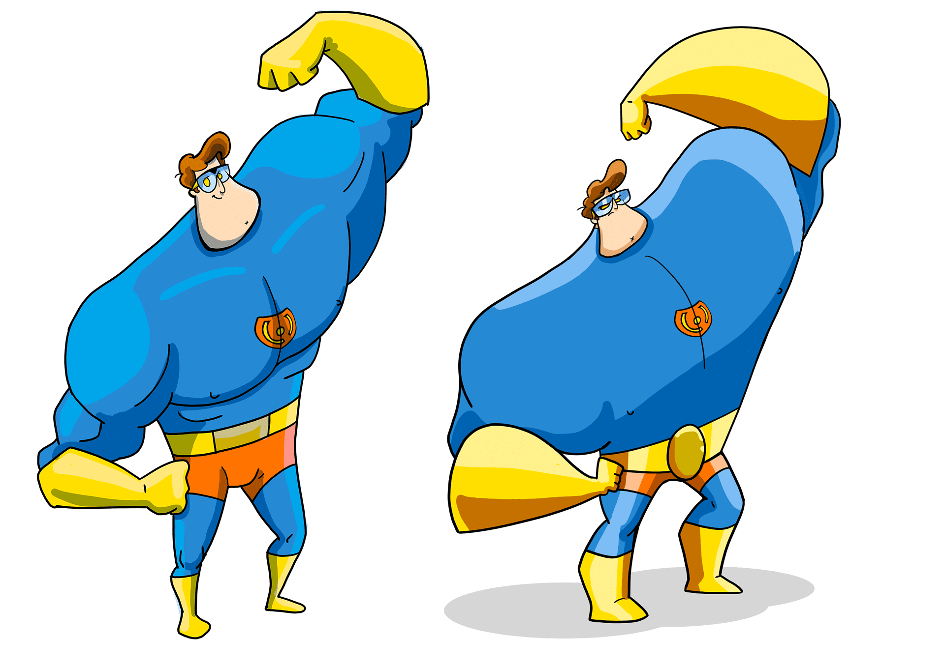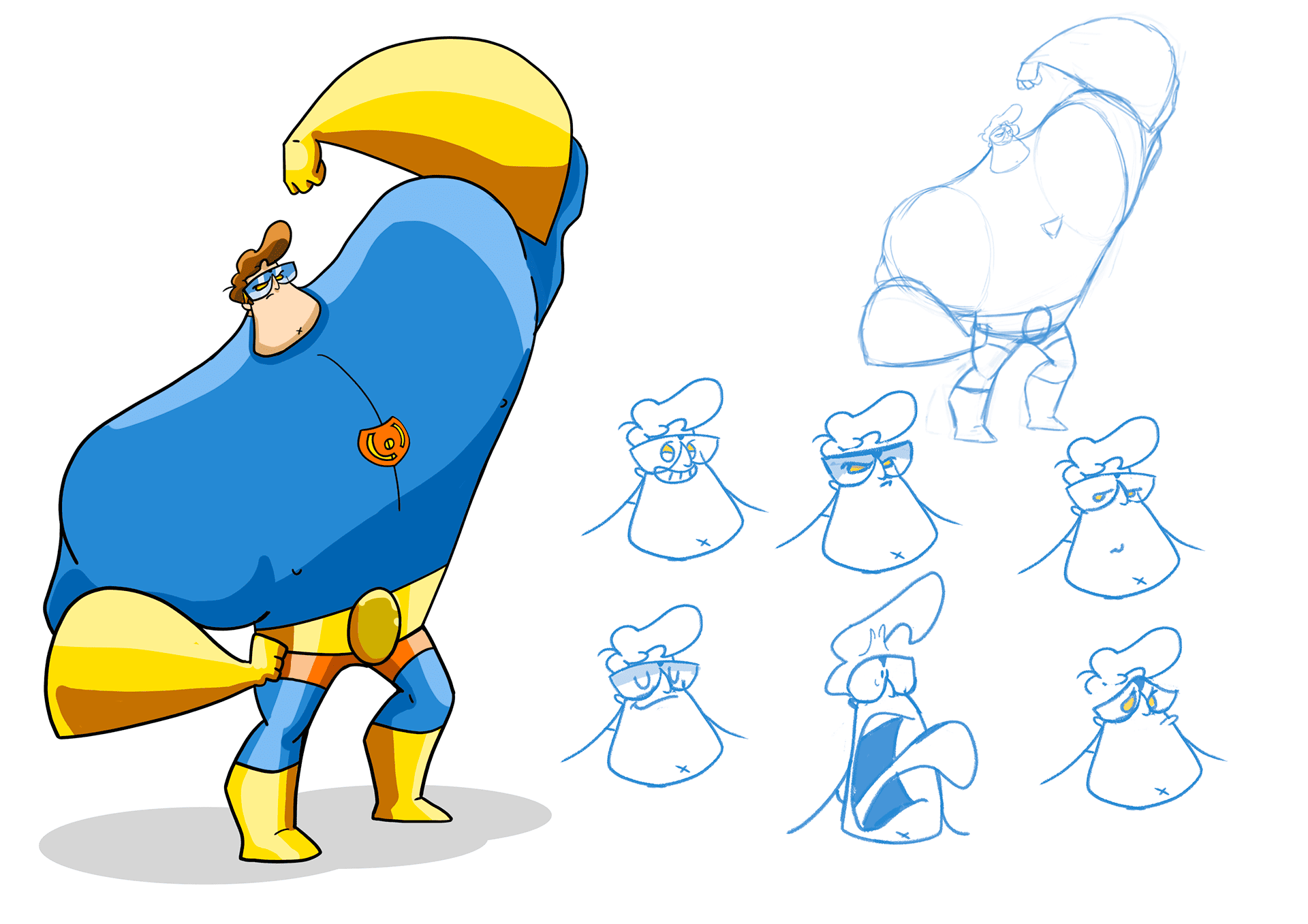 A primeira versão foi usada nas primeiras tiras e coincidentemente eu estava fazendo um estudo mais aprofundado sobre Design de Personagens na época.