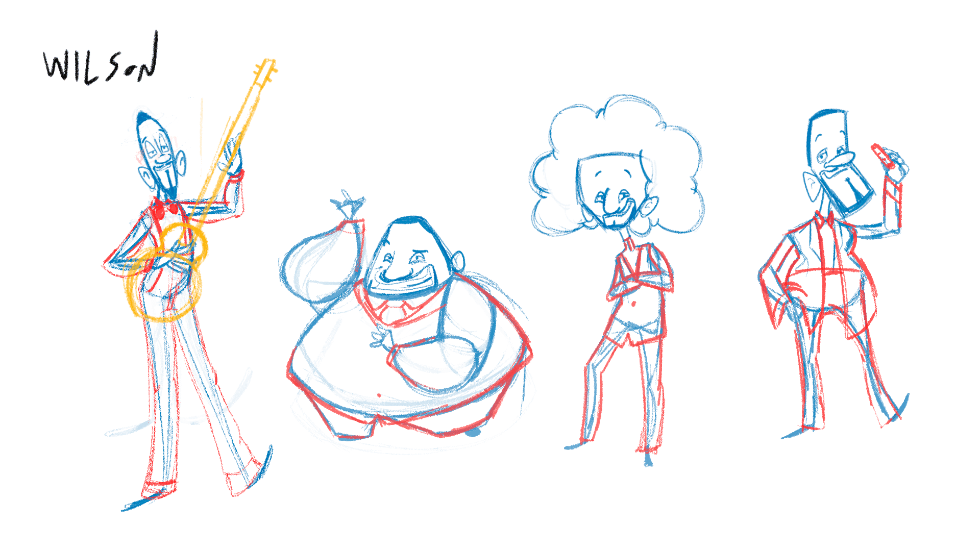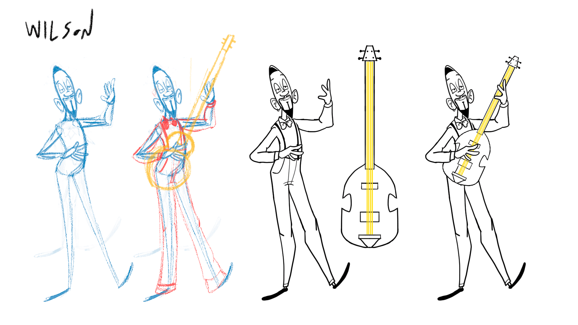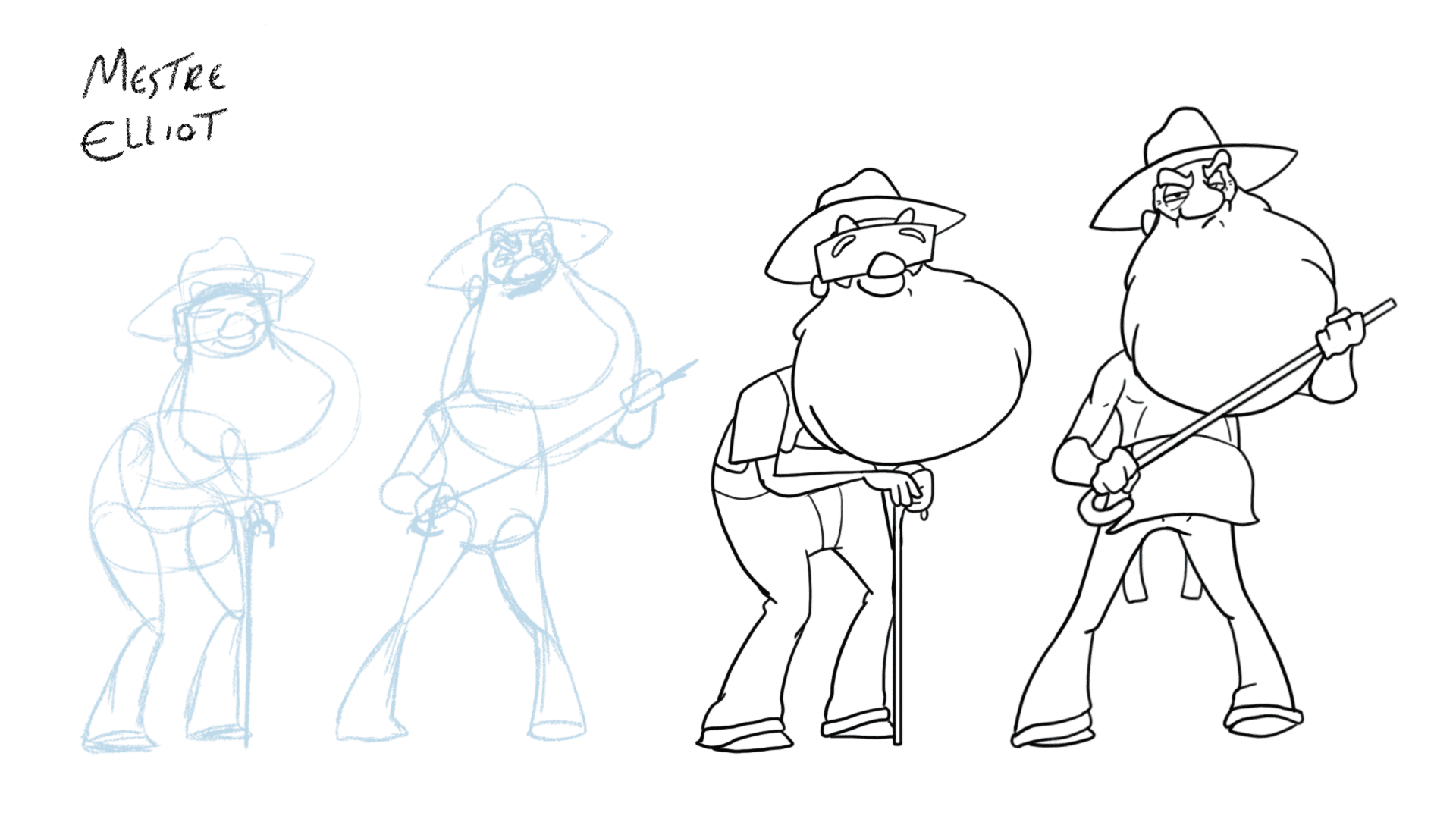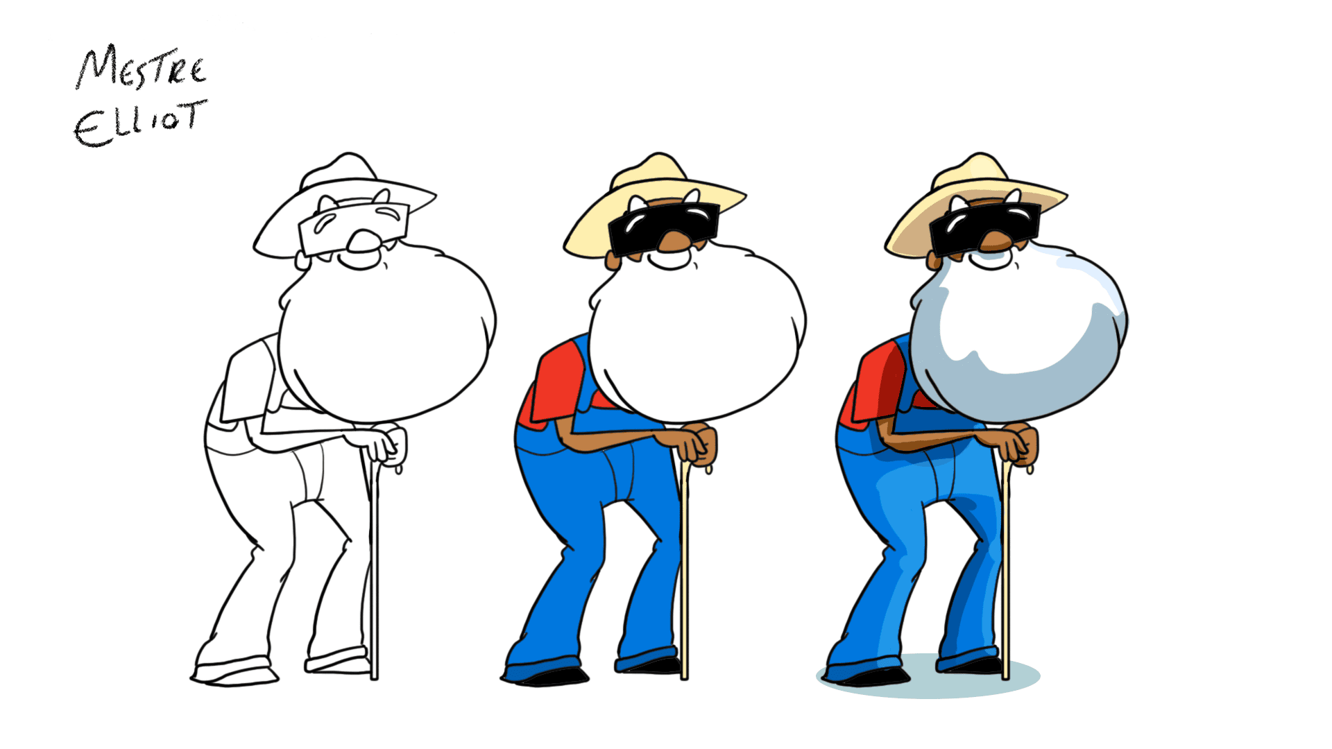 Também temos personagens secundários que foram desenhados. Abaixo você pode acompanhar o processo de design do Mestre Elliot e do Wilson.